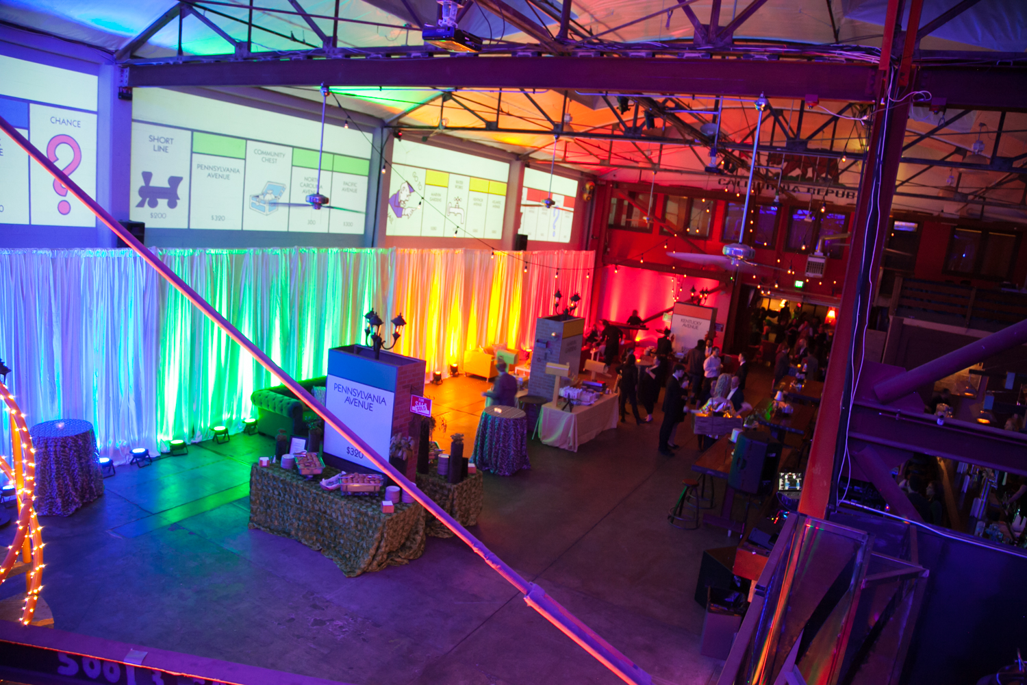 A 2,000-person holiday party held within a 30,000-square-foot space.